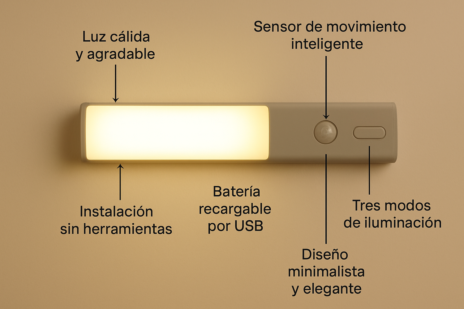 Iluminación automática que aporta comodidad y seguridad, evitando tropiezos y encendiéndose solo cuando la necesitas. Ahorra energía, se instala en segundos sin cables, ofrece luz cálida y acogedora y funciona en cualquier espacio del hogar. Su diseño moderno mejora la estética y, al ser recargable, sigue funcionando incluso sin electricidad. Todo esto con un precio muy accesible: antes 39,99€, ahora 24,99€