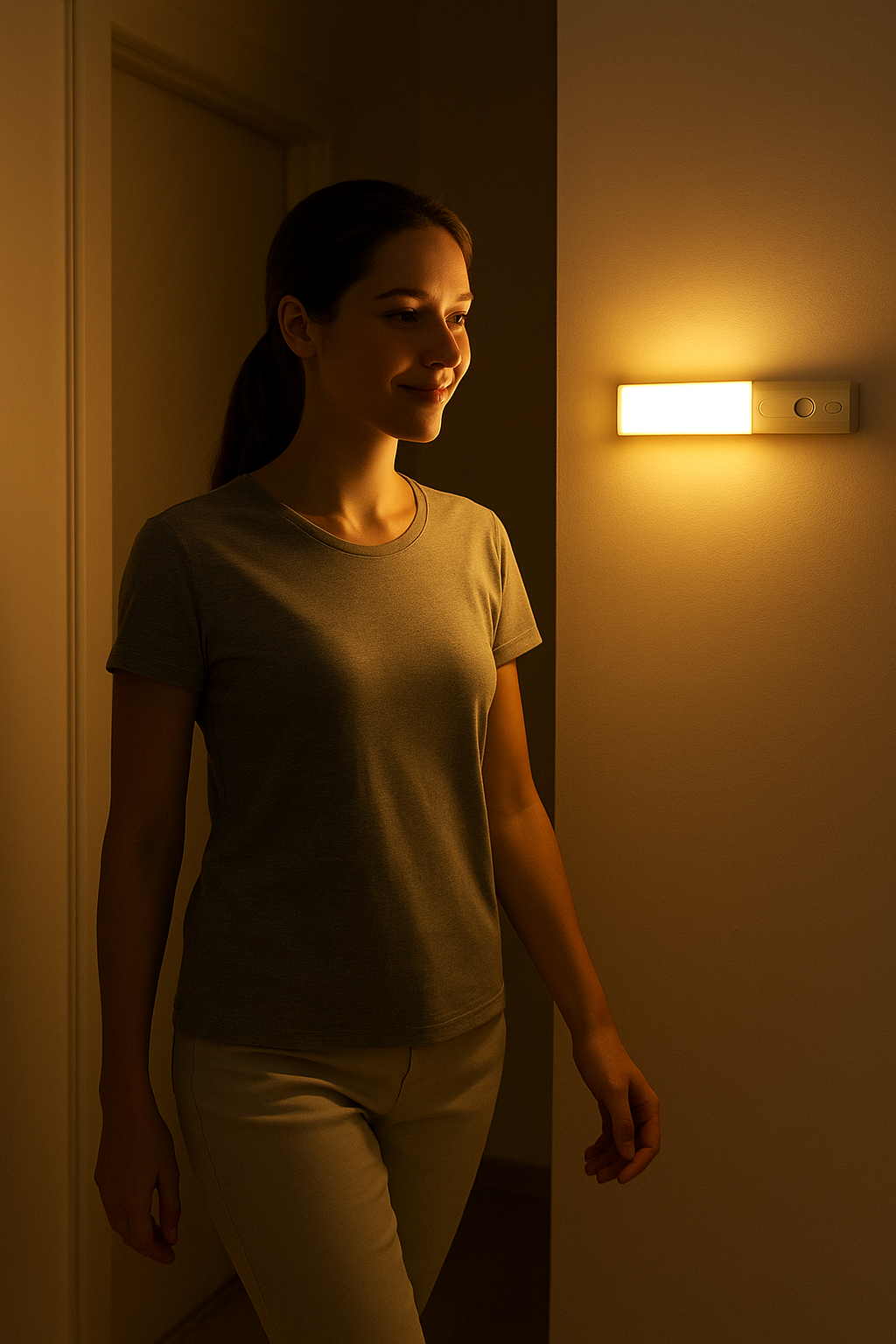 Esta lámpara LED con sensor de movimiento se enciende sola al detectarte, ofreciendo una luz cálida perfecta para pasillos, armarios, baños o habitaciones. Sin cables ni instalación: la colocas en segundos y funciona en cualquier lugar. Su diseño minimalista aporta un toque moderno mientras mejora tu día a día con comodidad y eficiencia