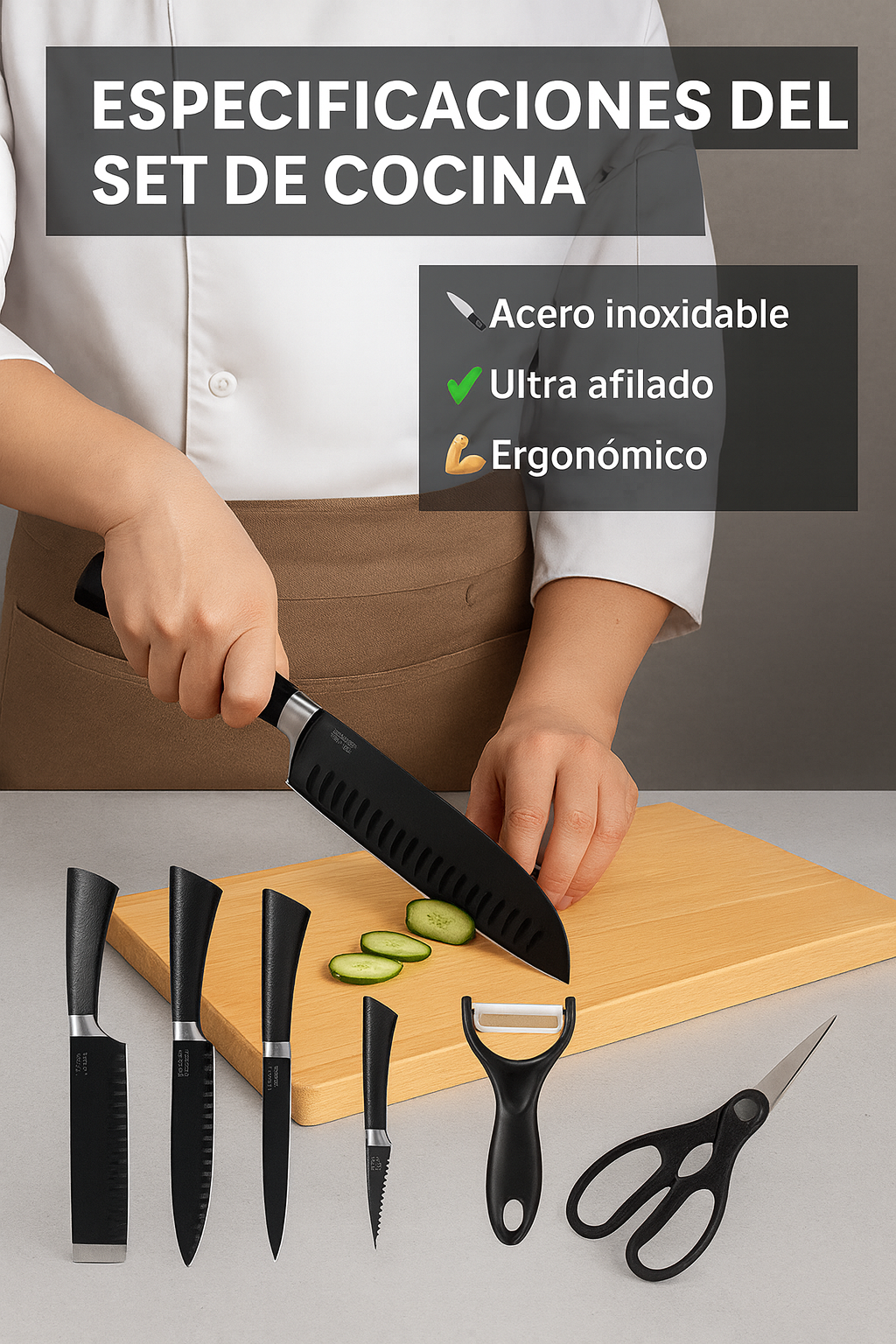 “Descubre el set de cocina que transforma cualquier receta en una experiencia profesional: corta más rápido, con menos esfuerzo y con la precisión que siempre quisiste tener en tu cocina.”