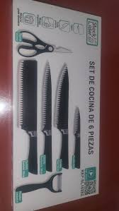 Este juego incluye un cuchillo de chef, un cuchillo de trinchar, un cuchillo pequeño, un cuchillo mondador, un pelador de cerámica y unas tijeras, proporcionando todas las herramientas necesarias para afrontar cualquier tarea en la cocina con facilidad y precisión.